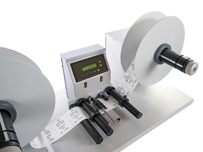 Rebobinador con contador de etiquetas y control de presencia de etiqueta